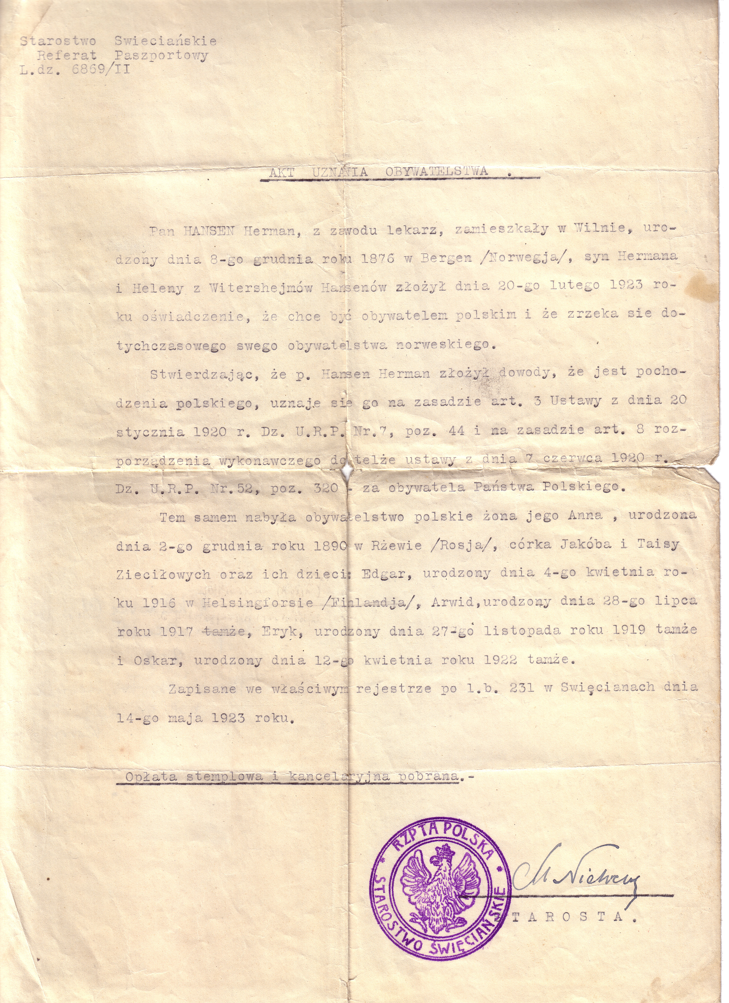 Po przyjeździe do Polski w 1924r., w której po 123 - letnim okresie nie istnienia państwa rozpoczął się burzliwy okres odrodzenia państwowego, rodzina znalazła się w szczególnej sytuacji - inna rzeczywistość, nowy język polski itd.