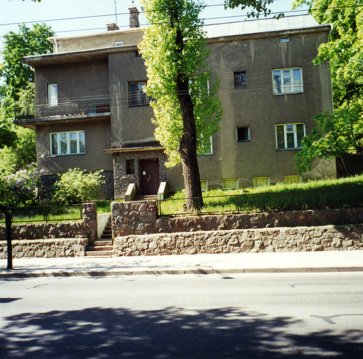 Przed „paradnym” wejściem od Moniuszki leżał szeroki kamienny stopień. Na tym stopniu często siadywały i bawiły się dzieci, z tego stopnia odświętnie ubrana Mama witała i żegnała gości.