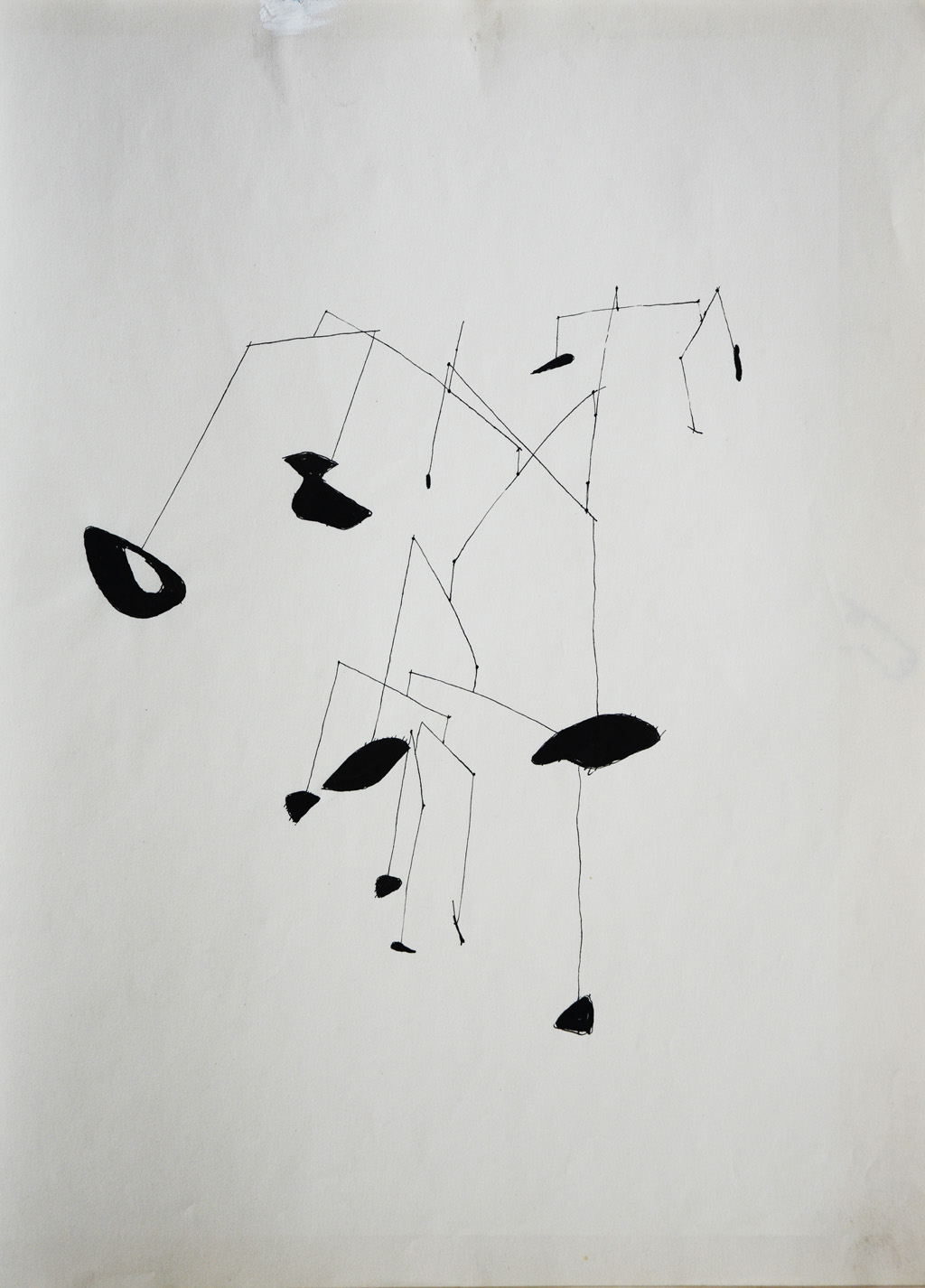 Bardzo interesujące i pogodne formy w ruchu - mobile Caldera należą do najłatwiejszych w odbiorze kompozycji czasoprzestrzennych. Jego prace widziałem w Paryżu, a potem w Nowym Jorku. Zapamiętałem szczególnie duże mobile, składające się najczęściej z dwóch lub trzech form, z których przynajmniej jedna jest szeroko rozbudowaną strukturą dużej ilości drobnych form, wykonanych na ogół z blachy i drutu. Kompozycja polega najczęściej na zestawieniu złożonej z drobnych elementów drgającej „chmurki” z formą lub formami większymi, strukturalnie zróżnicowanymi. Przywodziła na myśl powietrzne obrazy Miró. Takie zestawy form, powiązane elastycznymi przegubami, widziałem zawieszane pod stropem, albo na wysokich stojakach. Niezwykła czułość na najmniejsze ruchy powietrza, stanowi o uroku mobili Caldera, które drganiem i ruchem złożonej struktury wizualizują niewyczuwalny podmuch, ożywiają wnętrze. Prawie „perpetuum mobile”. Inne „czasoprzestrzenie” Caldera to drobne formy z drutu, (portrety, sztukmistrz i inne) ustawione na tle białej ściany i odpowiednio oświetlone, rzucają na nią cienie, które przy ruchu zwiedzającego przenikają się z rzeźbami i powodują ich „ożywienie”.