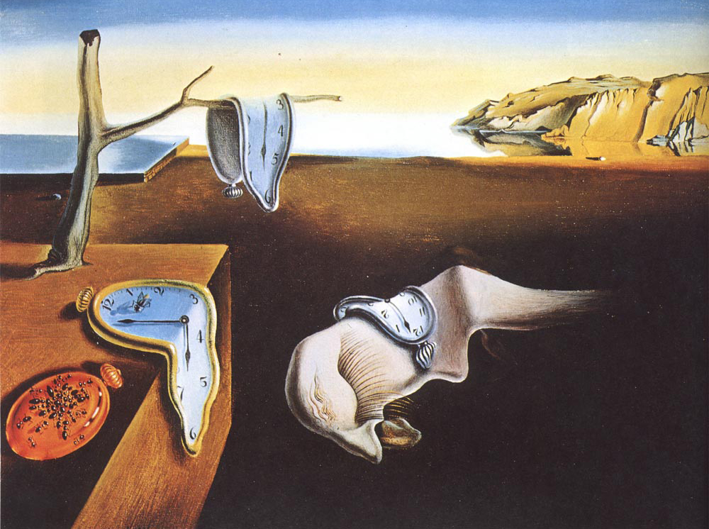 Z krawędzi stołu spływają ciekłe zegarki. Temat obrazu „ Czas i jego przemijanie” spowodował, że wrzuciłem go do koszyczka czasoprzestrzeni refleksyjnej. Jego nadrealistyczne obrazy to nierealne kompilacje naturalistycznie potraktowanych elementów, pojawiających się w realnym świecie. Naturalistyczna forma obrazów Daliego jest spójna z pśtyką jego dzieł - czasoprzestrzenią refleksyjną.