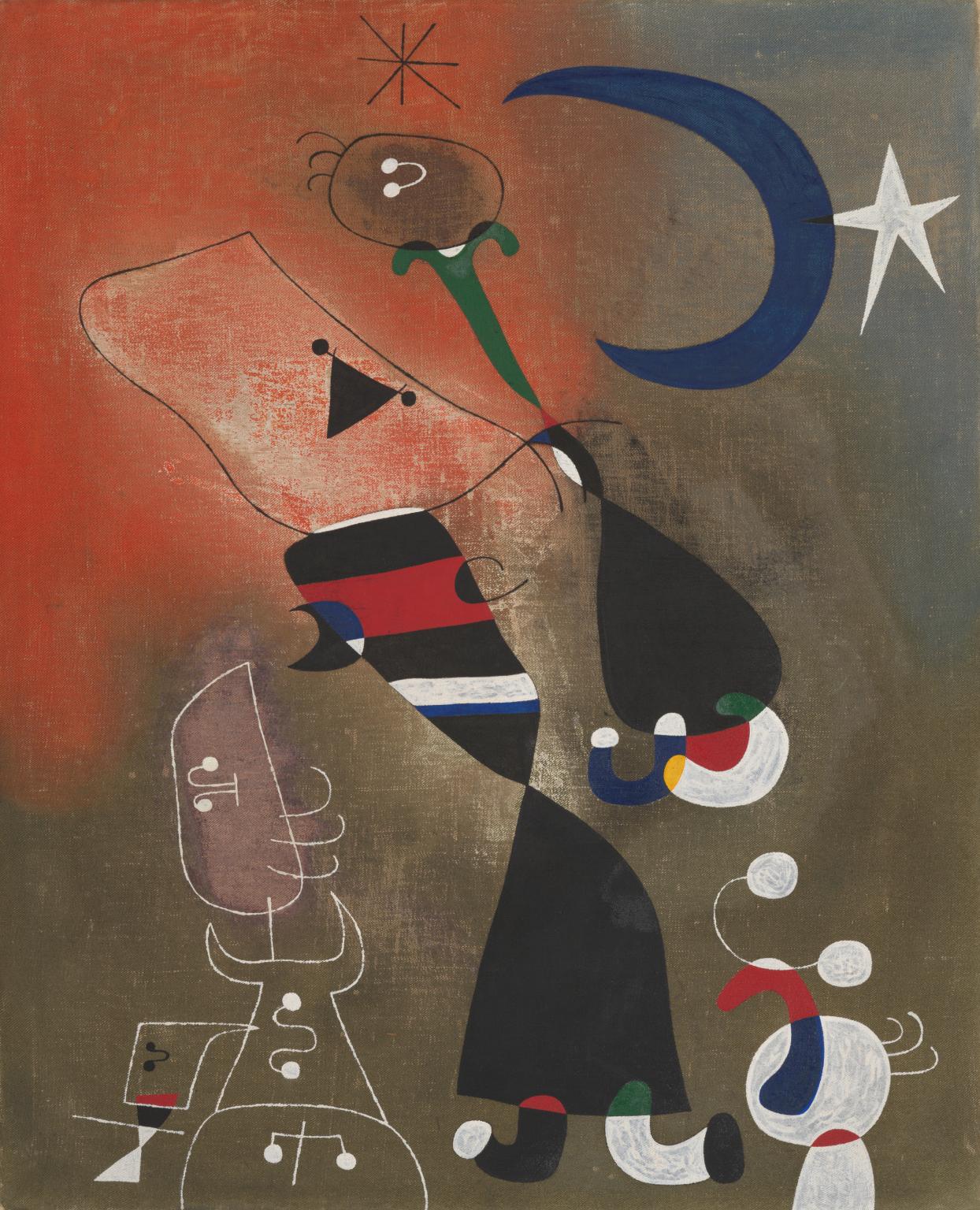 W okresie późniejszym, pod koniec lat czterdziestych, kiedy właśnie przebywałem w Paryżu, Mirö tworzył anegdotyczne hybrydy - skrzyżowanie interpretowanych rysunków dziecięcych z bajkową sytuacją postaci z obrazów Chagalla. Płaszczyzny rysunków wypełnione były płasko intensywnymi kolorami, w których czerń odgrywała często rolę zasadniczą. Takie są: „Kobieta i ptak w świetle księżyca” czy „Pies, pan i cień”. Potem, Mirö coraz śmielej odchodzi od form anegdotycznych w kierunku sztuki konkretnej, zachowując jednak charakterystyczną specyfikę prostych form rysunków dziecięcych.