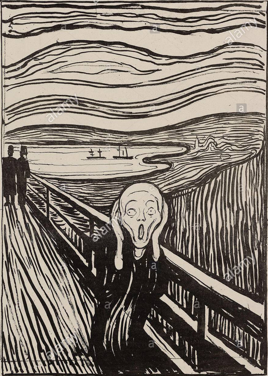 Widziałem jego malarstwo w Paryżu, a także w Oslo i Bergen. Największe wrażenie zrobiła na mnie czarno-biała litografia powszechnie znanego „Krzyku”. Po jej przeanalizowaniu doszedłem do wniosku, że siła wyrazu tej anegdoty zdopingowana jest środkami sztuki abstrakcyjnej: białą głowę kobiety z otwartymi ustami umieścił Munch w centrum obrazu, na ciemnym tle na skrzyżowaniu zasadniczych kierunków kompozycji, wzmacniając jej centralne położenie i biel twarzy czarnym pionem tułowia i dwoma czarnymi postaciami w dalszej perspektywie mostu. Ta litografia powstała w 1895 r., a poprzedzona była studiami od 1892 r.