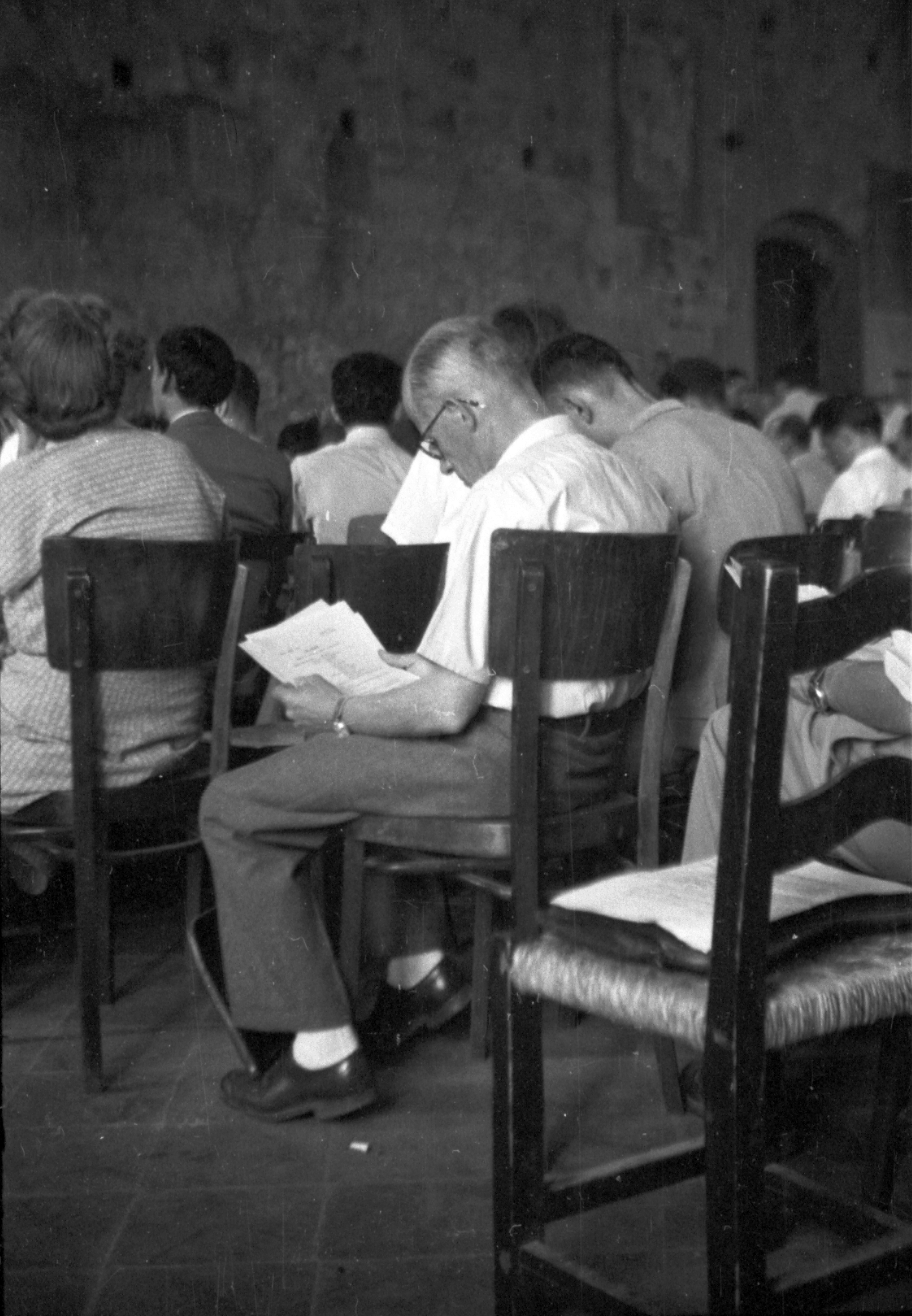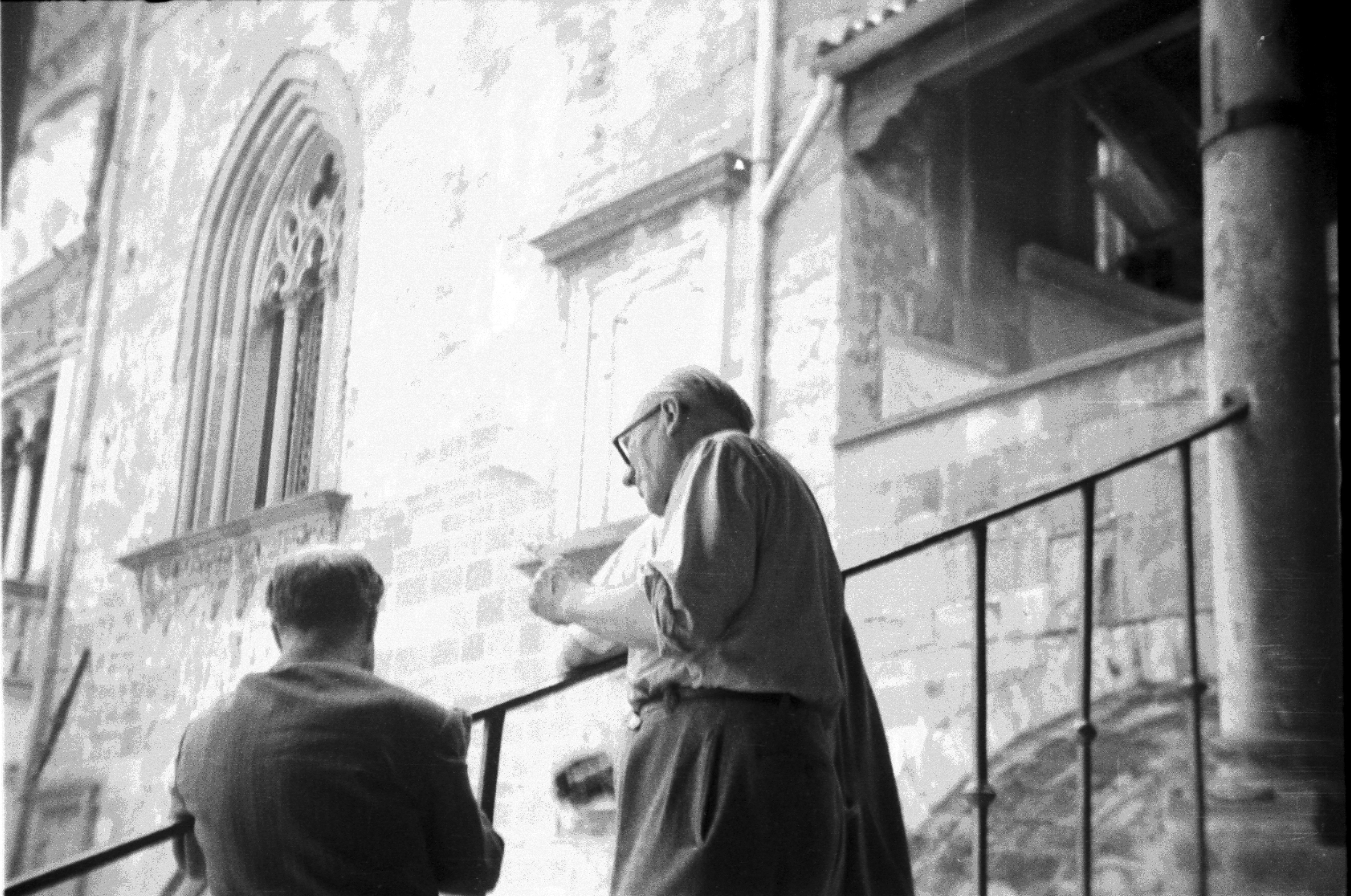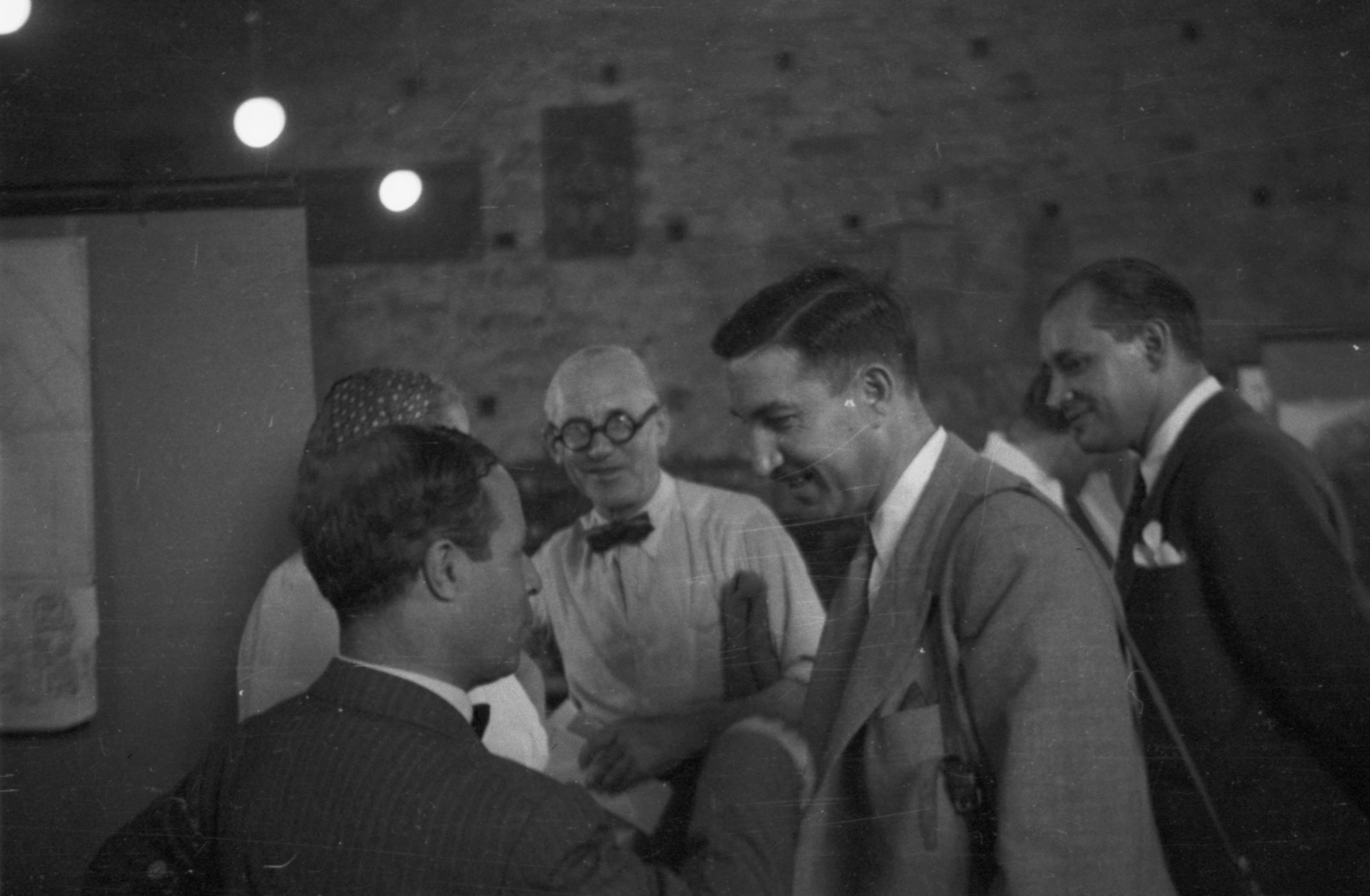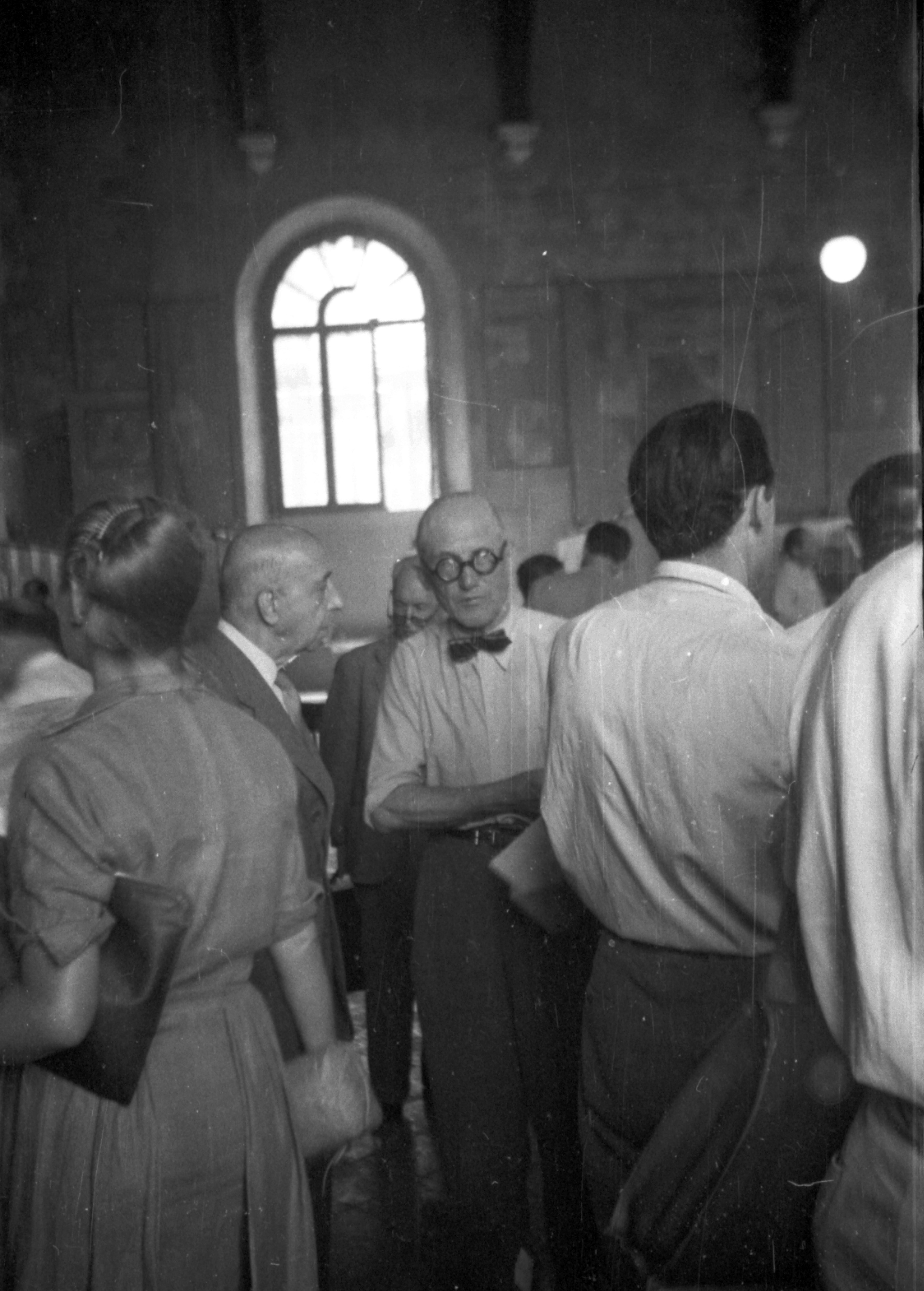 Na tych schodach mijałem rozmawiających: Le Corbusiera, Serta, Van Eesterena, Bodiansky’ego oraz wiele innych sław. Kiedy wszedłem do obszernej, wysokiej sali, gdzie po bokach rozwieszone były na jednakowej wielkości planszach prace uczestników, a środek wypełniały niemal puste na razie krzesła, zauważyłem znaną mi, kochaną łysinę mego mistrza. Zameldowałem się i dałem mu spokój, bo wiedziałem, że lubi podglądać życie samotnie.