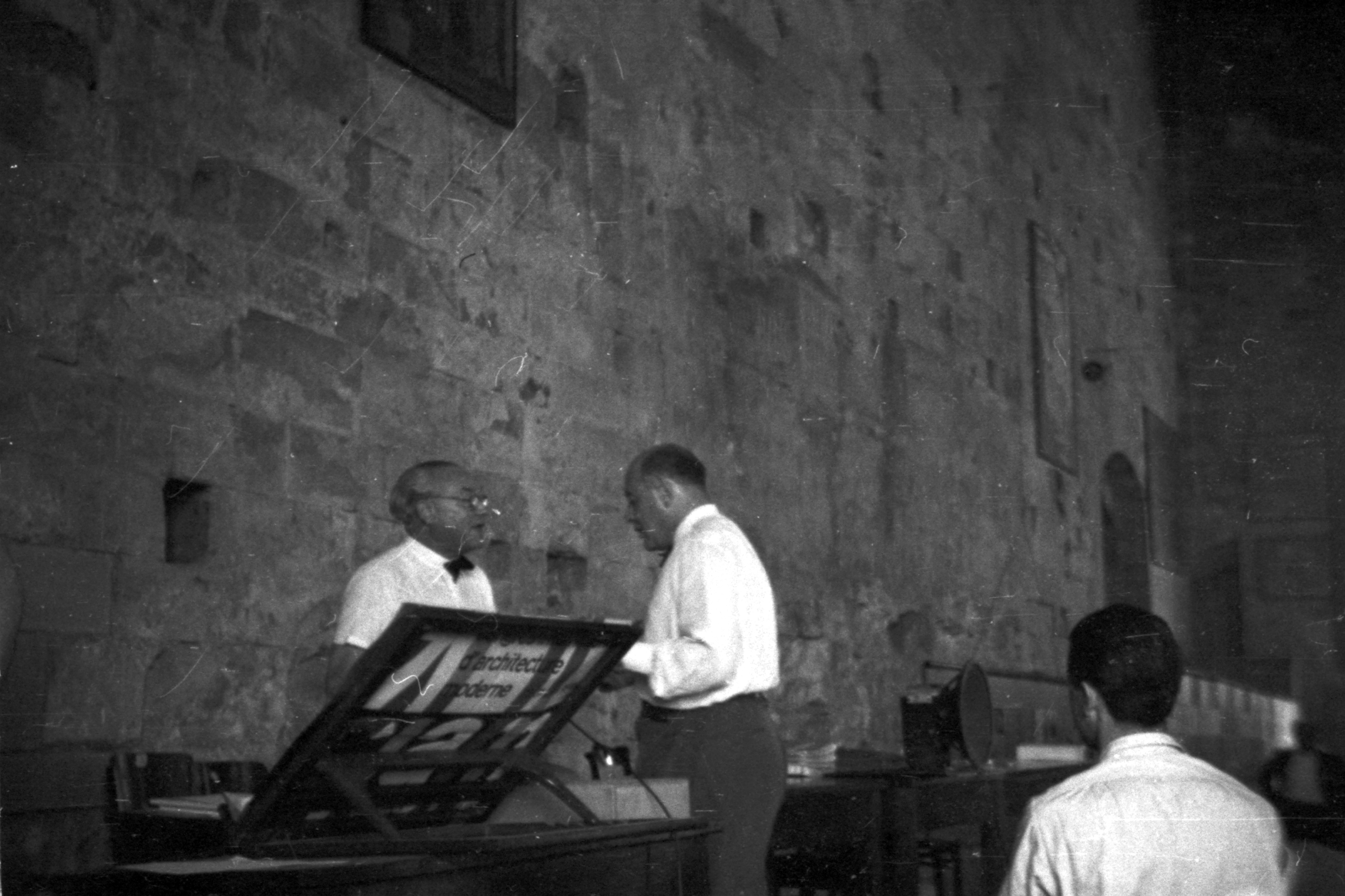 Zaczęły się obrady. Le Corbusier prezentował „grille” (siatkę) dotyczący analizy wektorów bloku marsylskiego. Metoda, według której ta analiza była opracowana, stanowiła propozycję systemu prezentowania prac na przyszłych kongresach. (Właśnie przy tej siatce udało mi się zrobić zdjęcie Le Corbusiera w rozmowie z Heleną Syrkusową.) Był to główny temat obrad. Prezentowano wiele innych problemów, m.in. zagospodarowanie doliny Aosty...
